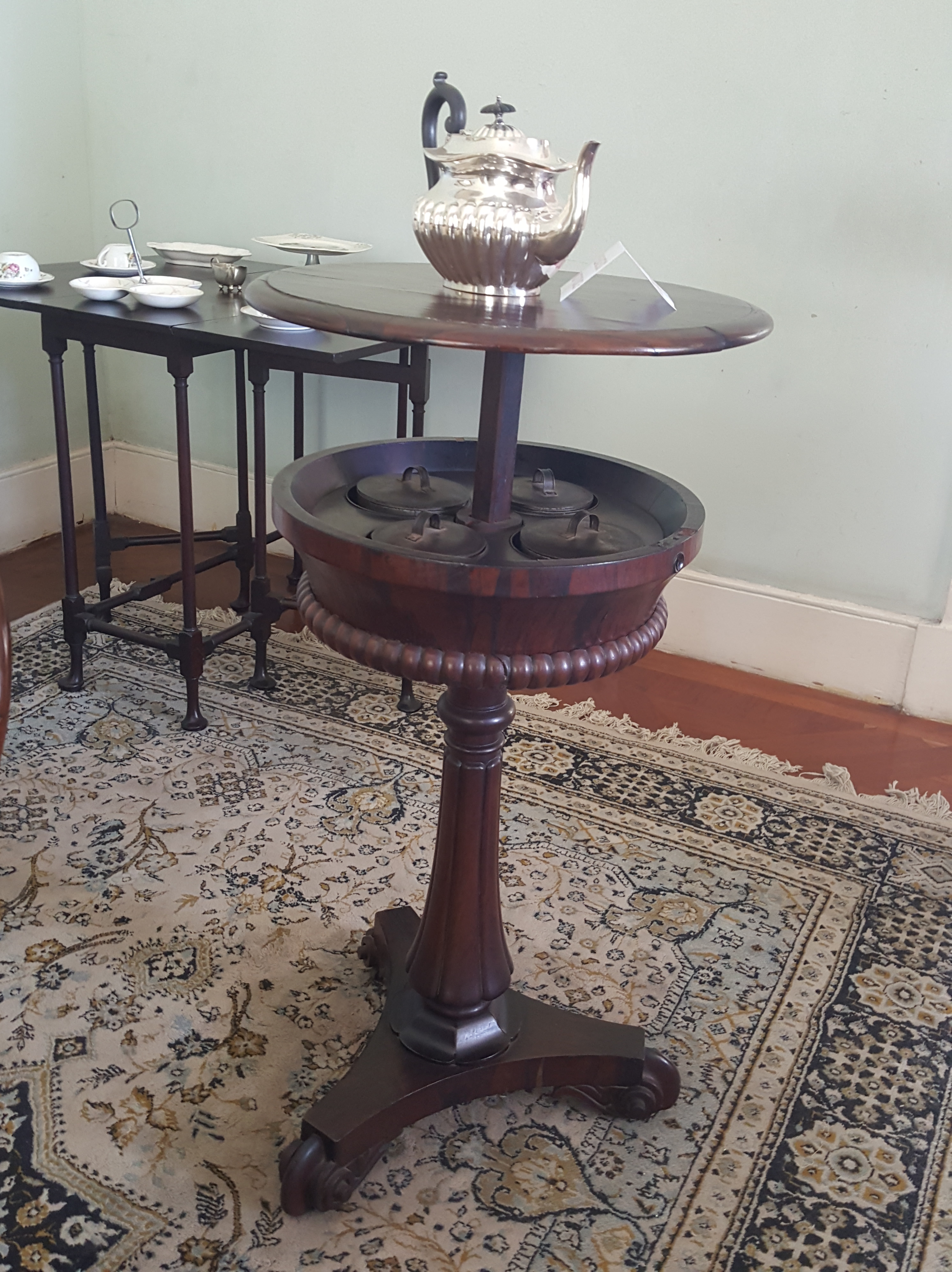 Built with the Georgian architecture archetype, Devon House once known as Devon Penn, used to house a race track to the south of the property. Other tidbits of info include the fact that Devon Penn was all of 10,000 acres when purchased in 1881, the house was once a gallery when it was owned by the government (still houses artwork on loan by the National Gallery of Jamaica) and a lot of the furniture still in the house are the original pieces, built using either mahogany (which there was a lot of around the estate), or Jatoba from Brazil. There are original tiles and floorings from construction in 1881 and a lot of the artifacts on display were the original ones used by the Stiebel family while they lived there.
